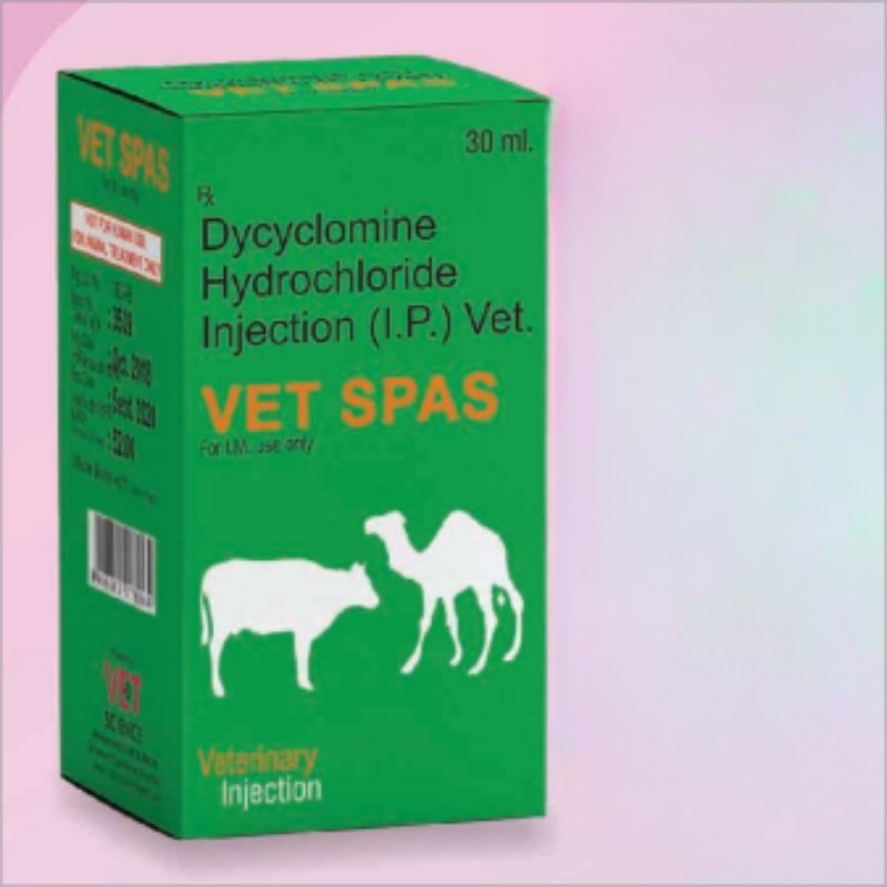 Dicyclomine HCL is an antispasmodic agent used to relieve smooth muscle spasms in the gastrointestinal tract. Its indicated in colic, enteritis, and intestinal cramping in livestock. By relaxing gut muscles and reducing pain, it helps restore normal digestive function and reduces discomfort in affected animals.