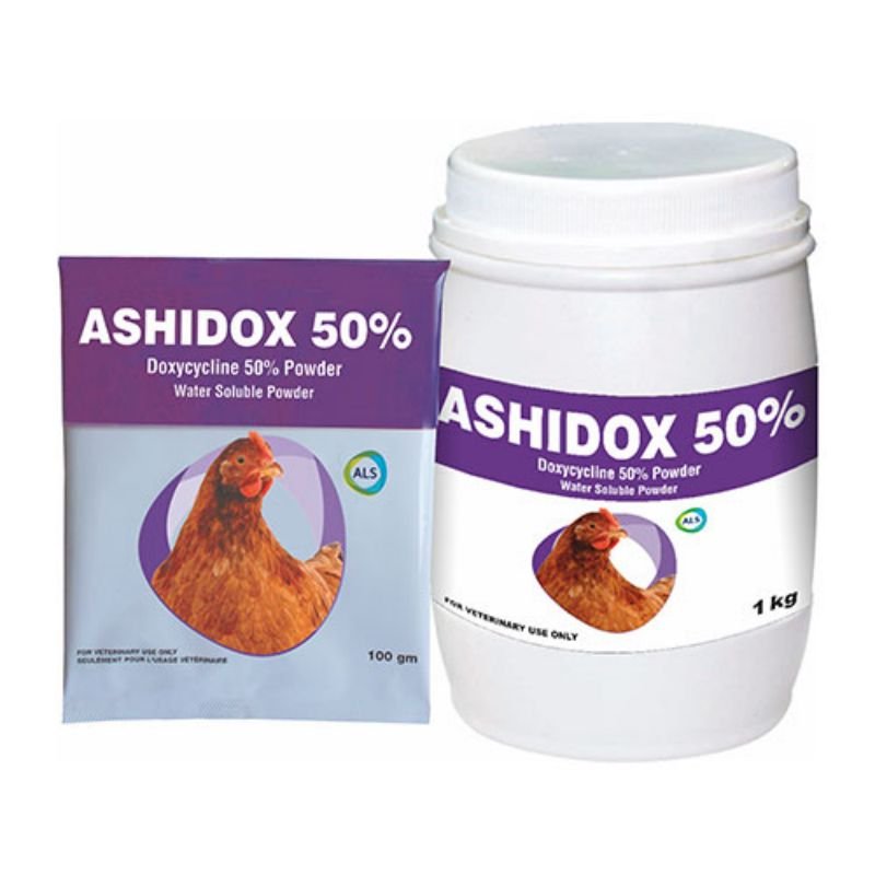 Poultry: 1 g of ASHIDOX 50% powder per 8-10 liter of drinking water for 3 5 days continuously or as directed by consultant veterinarian